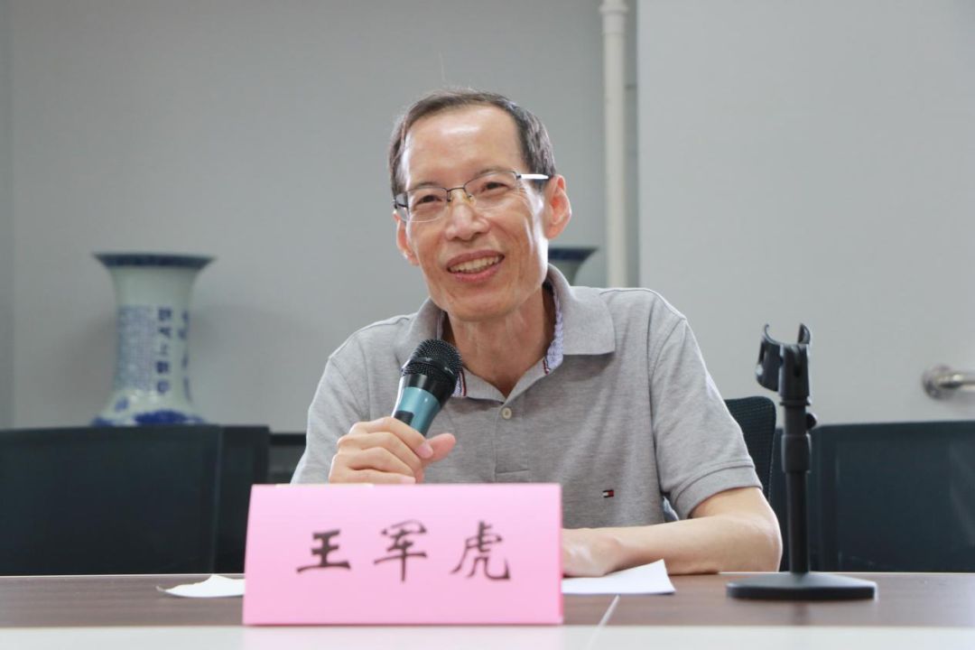 汉语教研室主任沈文君老师介绍了王军虎教授的教学生涯及学术成就,回顾了与王老师在教研室共同工作的岁月,她以“谦谦君子”“笃于事而慎于言”赞扬了王老师的为人和治学的品格。