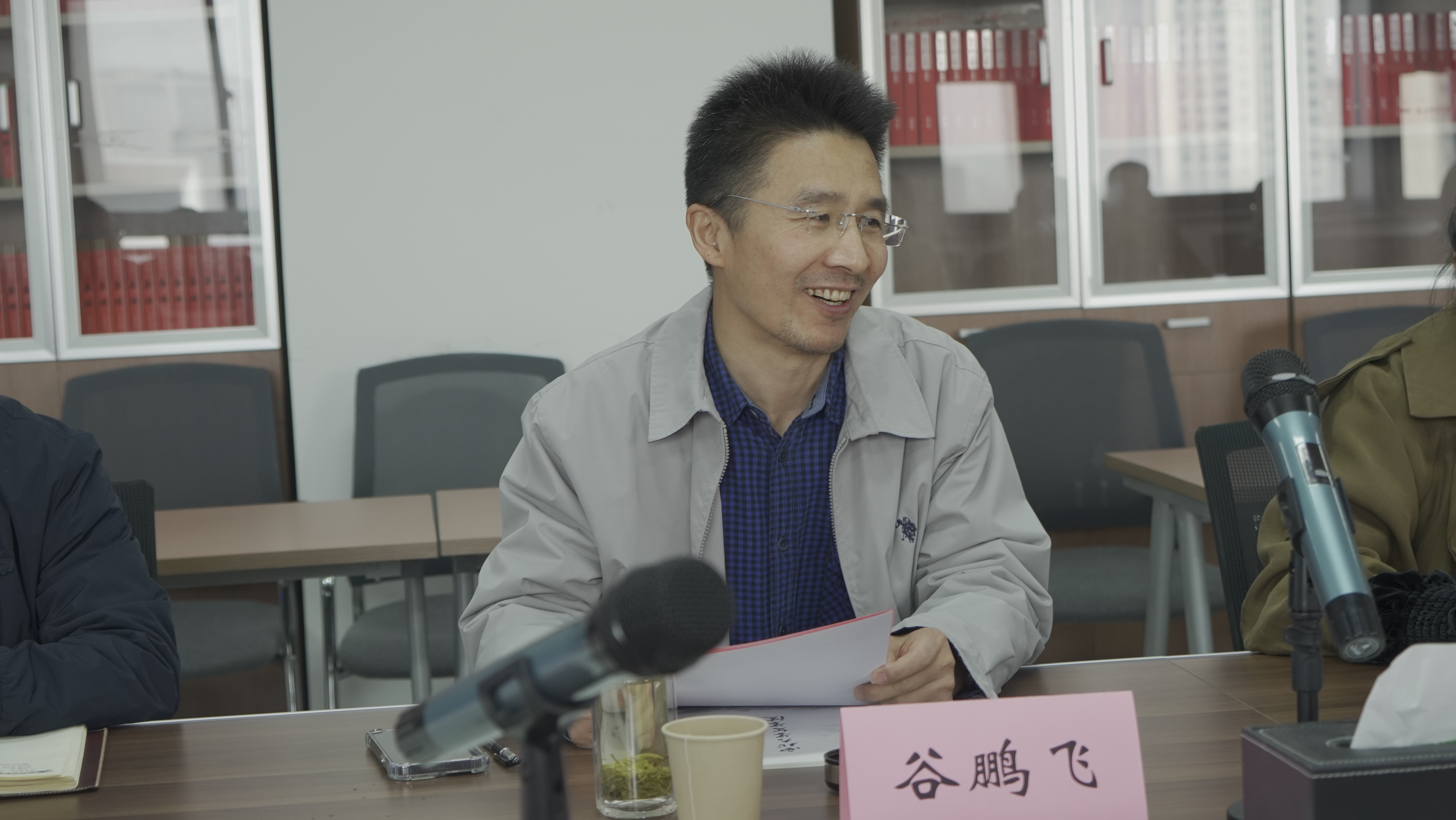 谷鹏飞主持座谈会,他代表学院对渭南师范学院人76net必赢官网一行到访表示欢迎。并对必赢76net线路官网学科发展、人才队伍建设以及科研成果等方面做了介绍;希望今后能持续加强交流合作,不断提升双方的教学以及科研水平。