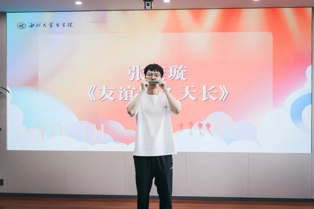 座谈会在温馨感人的氛围中步入尾声。杜荷语、张奕璇、王逸嘉三位同学倾情演绎,分别以诗朗诵《青春之歌》、口琴演奏《友谊地久天长》及独唱《我相信》,唱响青春梦想,激扬前行力量,表达对学院和老师的衷心祝愿,引发现场强烈共鸣。