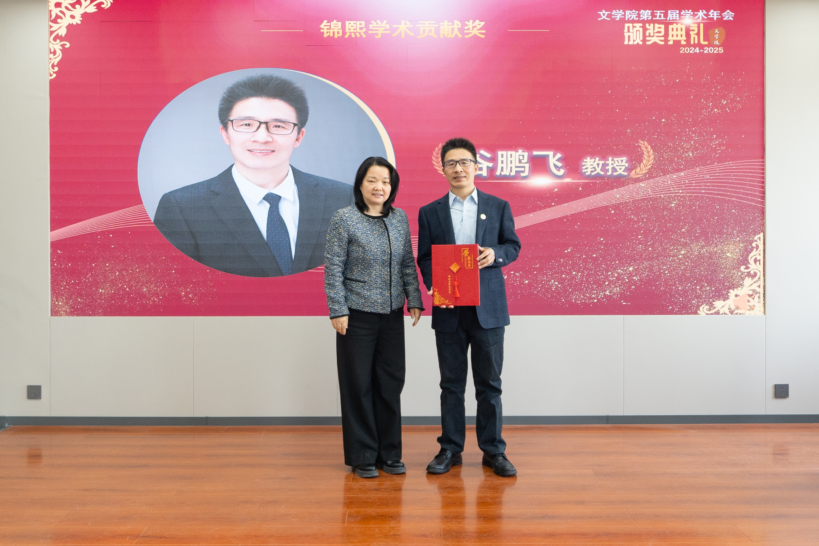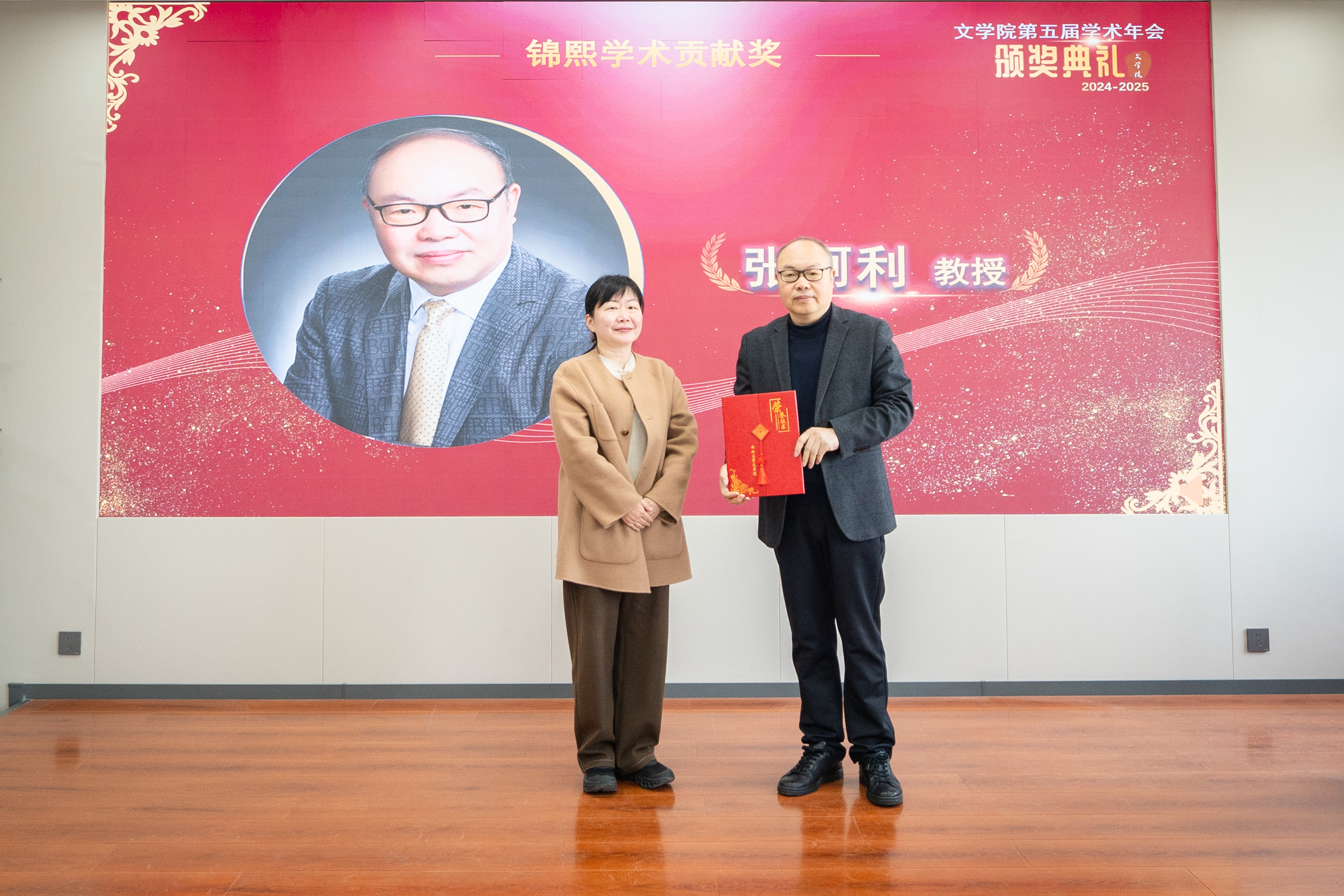 年会还举行了隆重的颁奖仪式。院党委书记姜宇宣读对2024年度优秀学术研究团队和学者的表彰决定,与会领导与职能处室负责人分别为76net必赢官网2024年度“锦熙”优秀学术研究团队奖、“锦熙”教学贡献奖、“锦熙”学术贡献奖、“锦熙”青年学者奖、“南山学者”奖、“南山杰出学者”奖等获团队及个人颁奖。