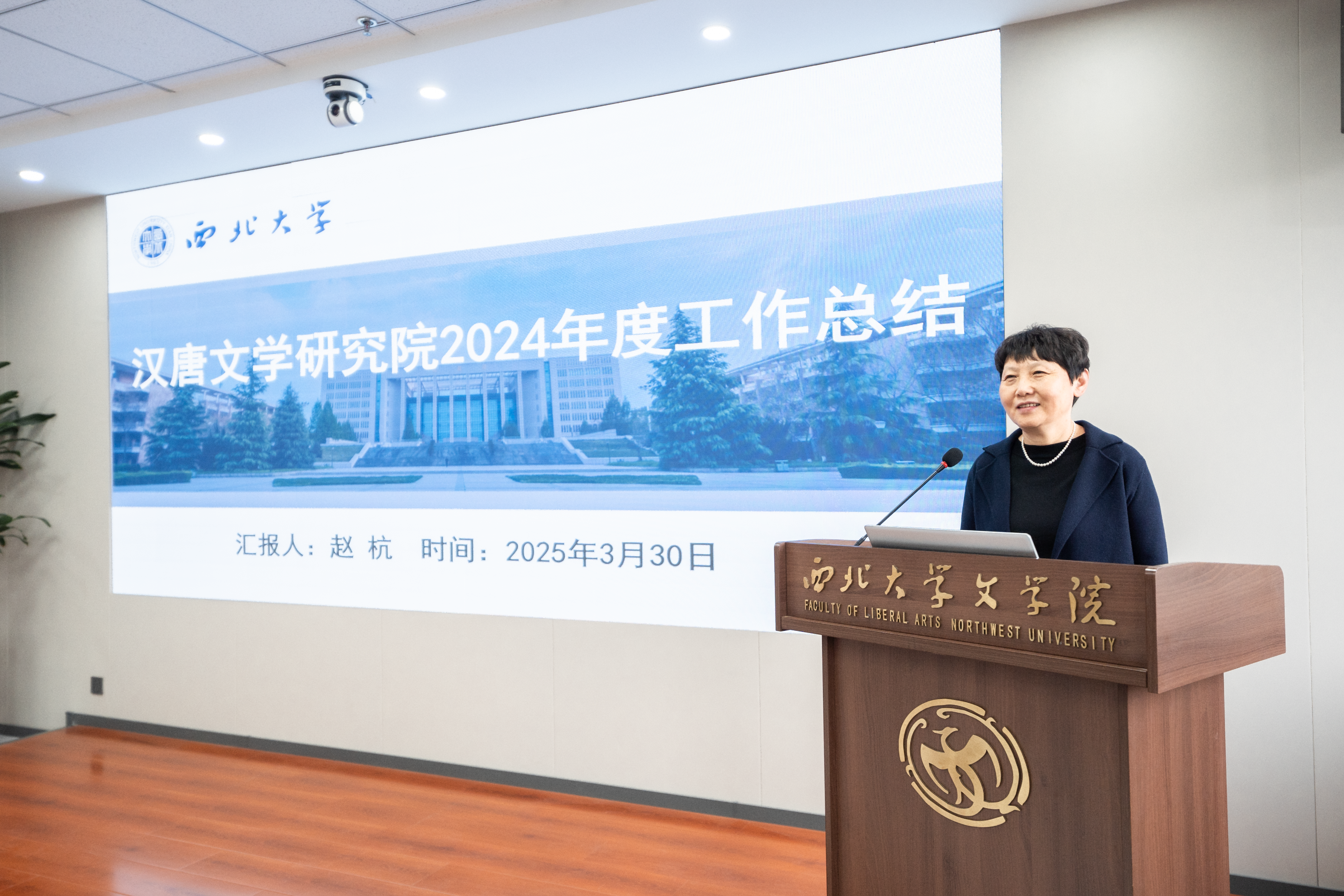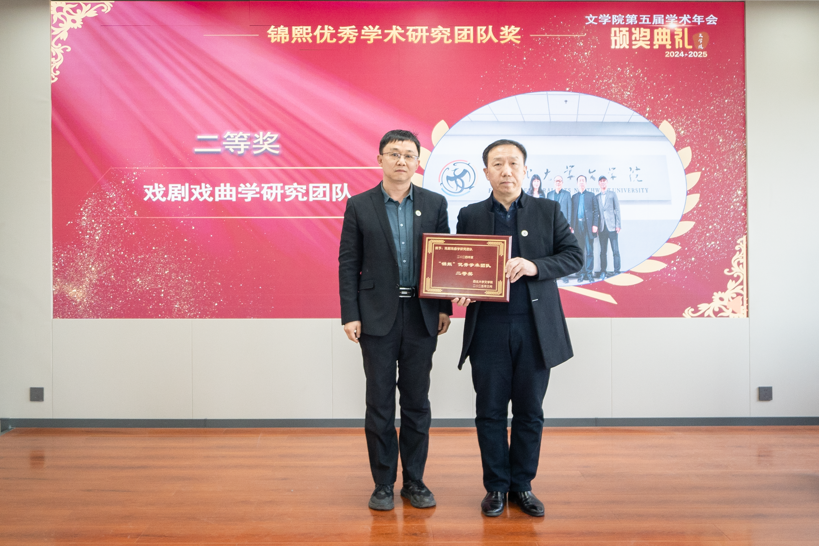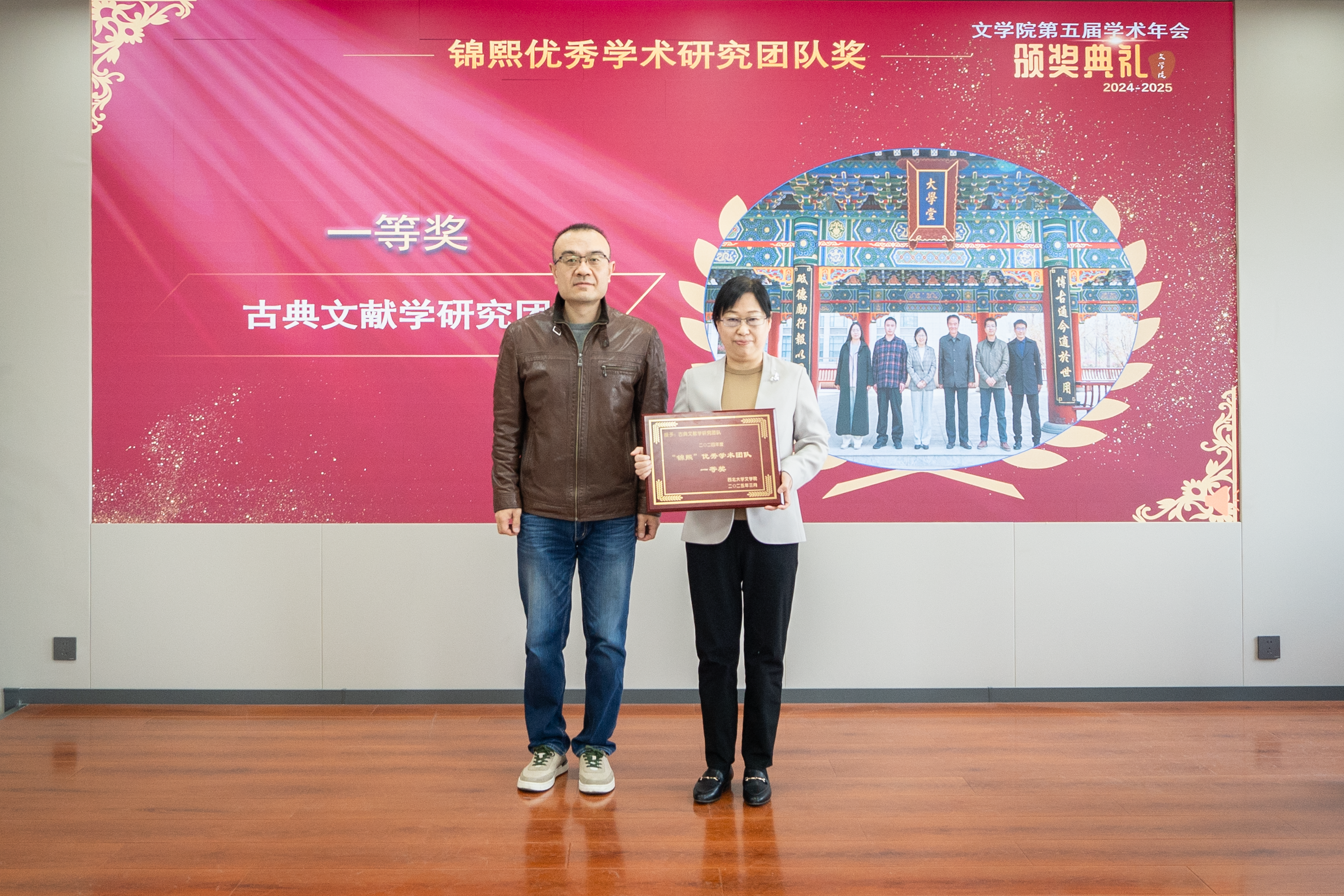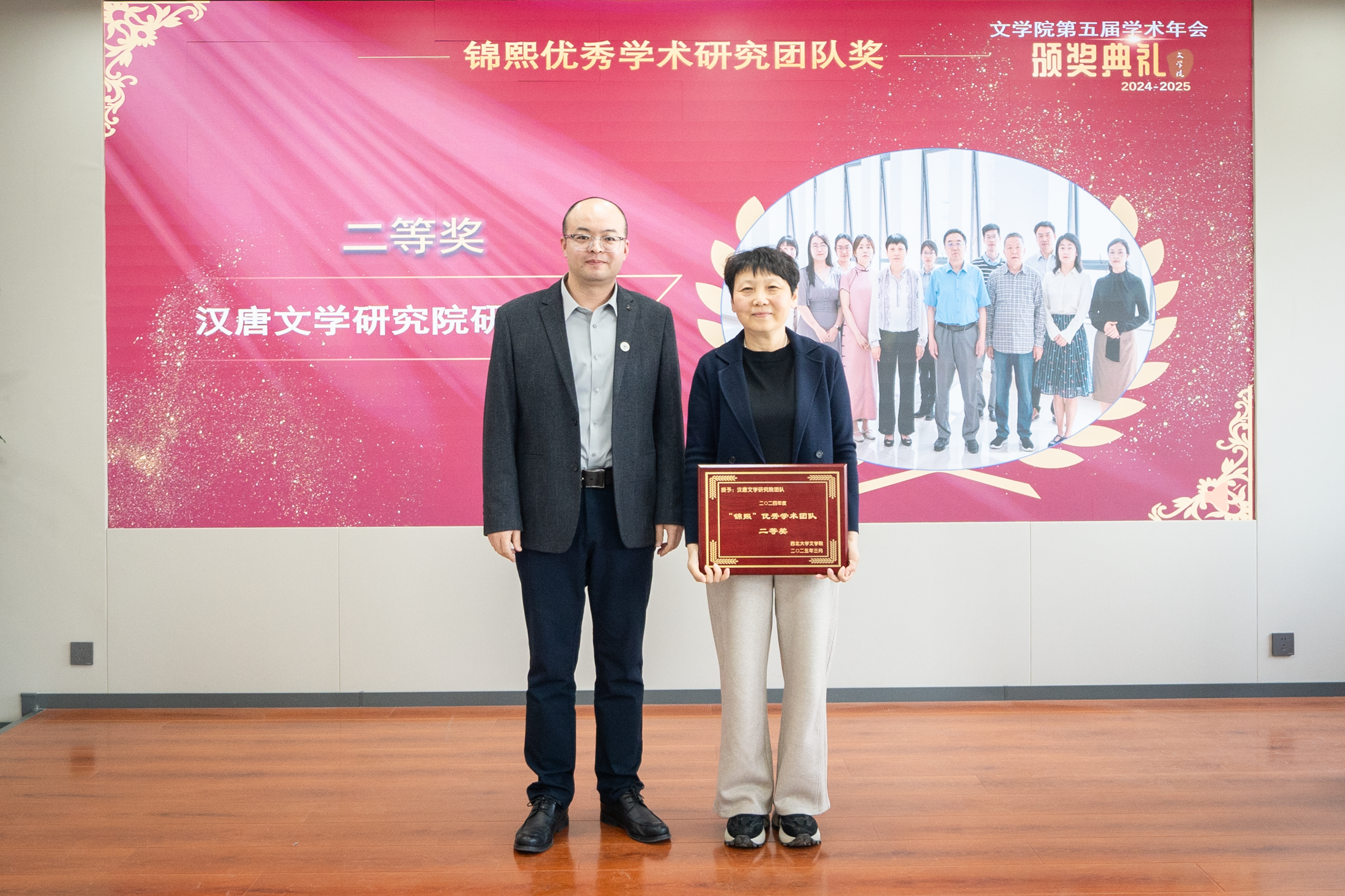 年会分为“工作汇报与颁奖仪式”和“师德大讲堂与学术报告”两个阶段。在第一阶段,文艺学研究团队、古典文献学研究团队、戏剧戏曲学研究团队、汉唐文学研究院研究团队、中国现当代文学研究团队等11个专业学术团队分别汇报了2024年度工作情况与2025年度工作计划。