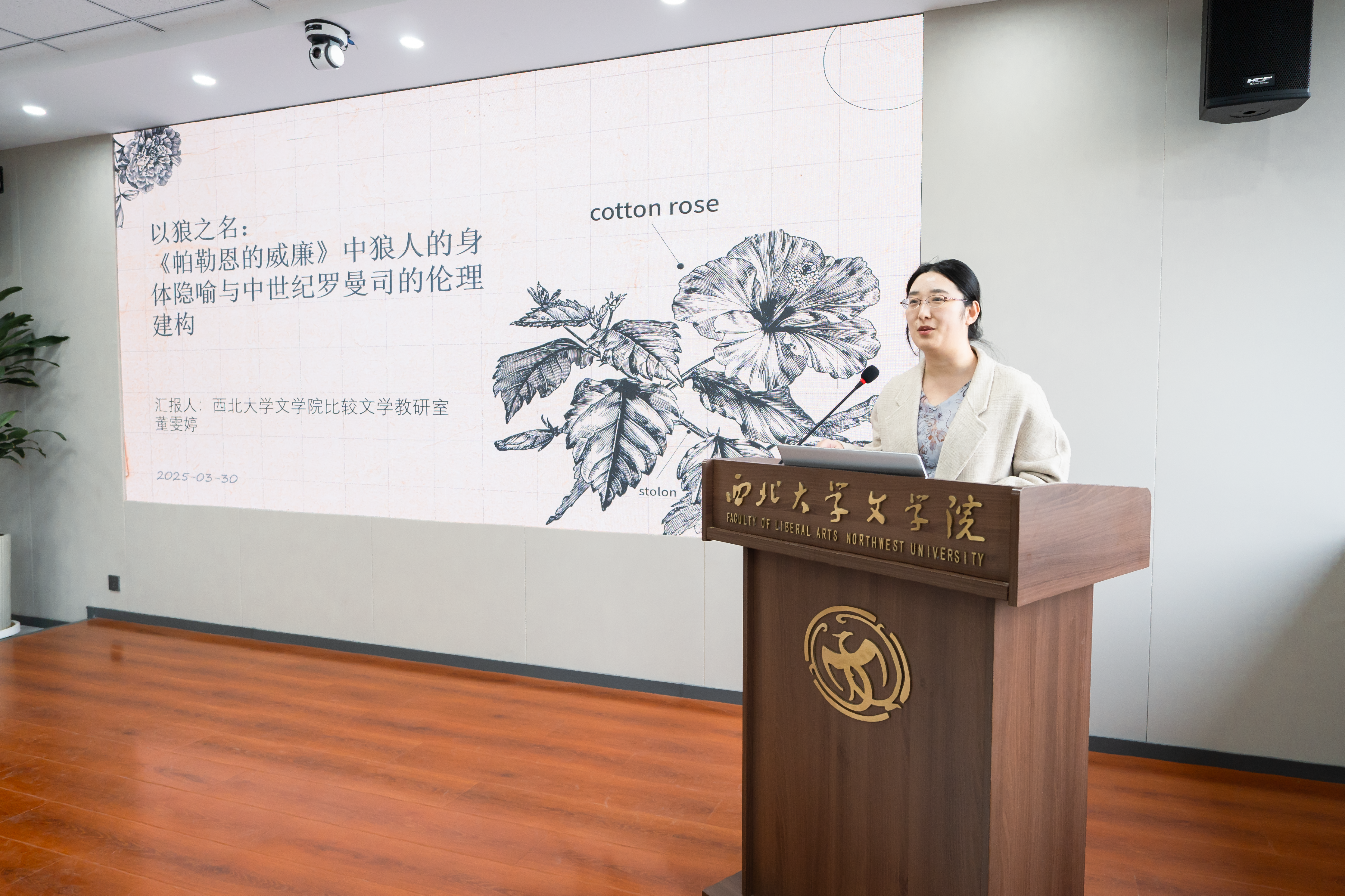 学院教师张阿利、李芳民、高俊林、赵阳阳、董雯婷和博士研究生张超分别作了题为《〈志愿军:存亡之战〉从“造世”到“情动”的家国记忆》《柳宗元思想的独特性及其思想史意义——以〈非国语〉对“大中”思想的阐发为讨论中心》《鲁迅小说中话语含蕴的“互体变爻”现象之分析》《〈画史会要〉“朱谋垔伪托说”辨误》《以狼之名:〈帕勒恩的威廉〉中狼人的身体隐喻与中世纪罗曼司的伦理建构》《传奇传统与新世纪小说中的“江湖气”》等六场学学术报告,学院教师焦欣波、杨遇青、姜彩燕、杜学林、张碧、赵林分别作了学术点评。报告主要内容均选自2024年发表的权威期刊论文,涉及不同学科方向的多项最新研究成果,拓宽了师生的学术视野和新知,反响热烈。